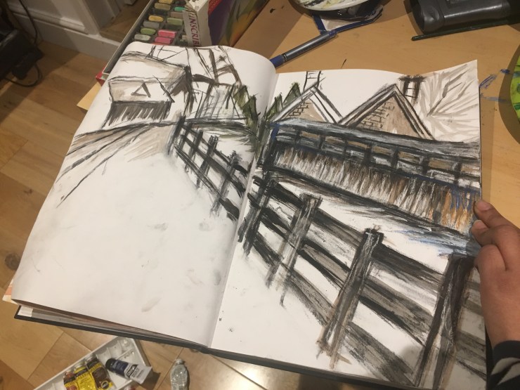 Reaching my sons school today I had to take a picture. The silhouettes, the white fingered trees and the textured ground made up a beautiful transformed world. So here it is a world made up of lines and curves- snow, slush fence post all lined up
