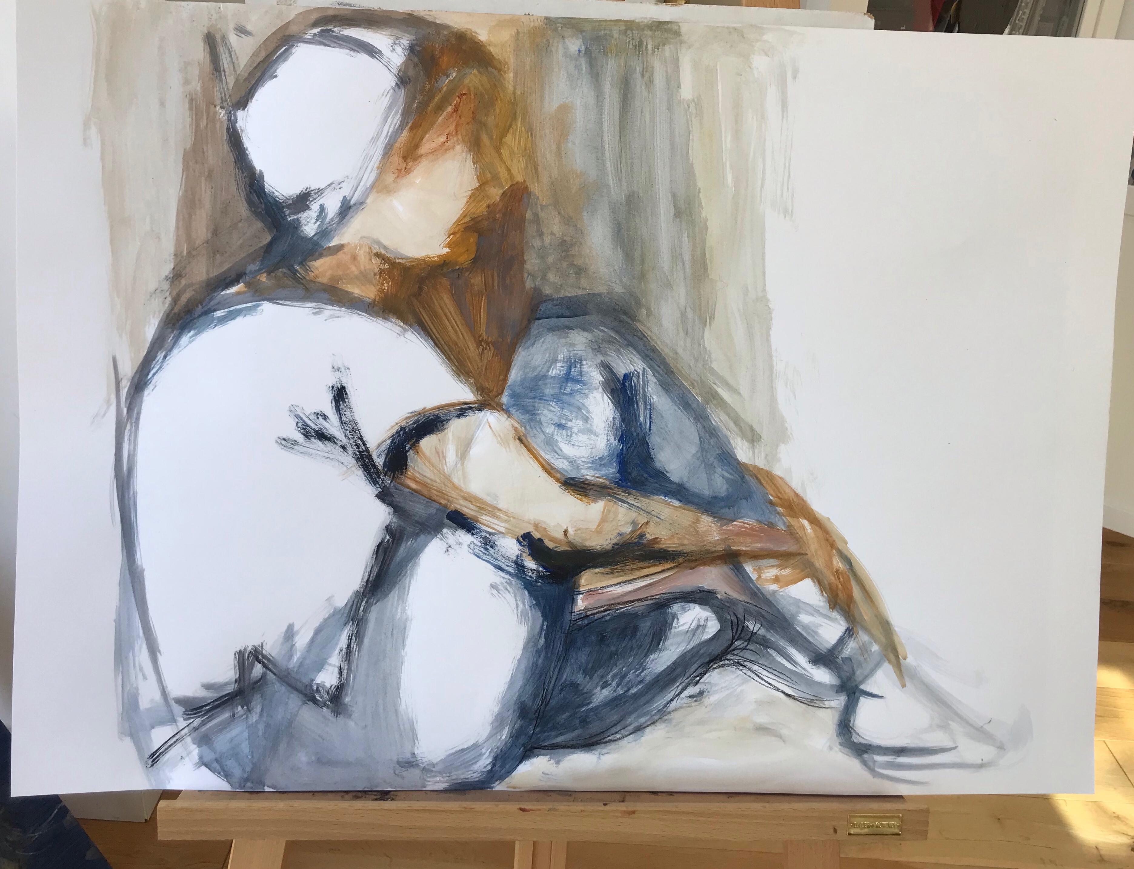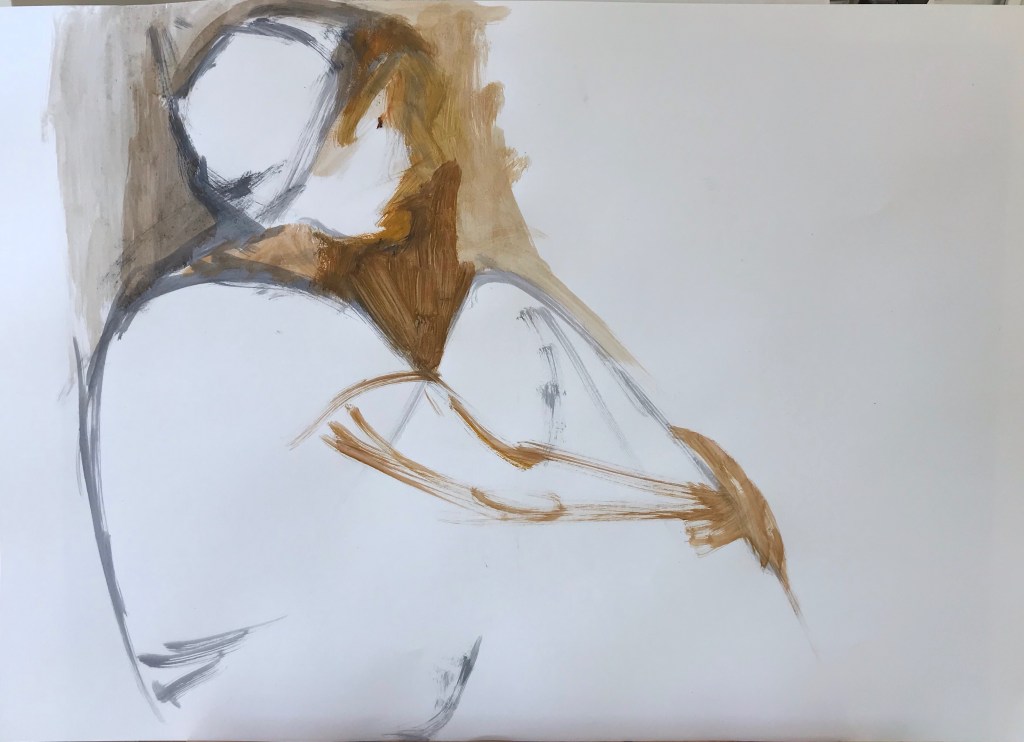 It’s as if the paint brush knows the comfort of a sitting pose, the ease of being in your own space and embrace. It caresses the embrace of the arms, the hill of the raised leg as if all the enjoyment of just being there in that space are held in those brush strokes.